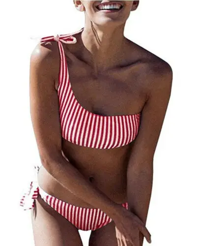 Женский купальник, полосатые бикини, с завязками на одно плечо, с п...