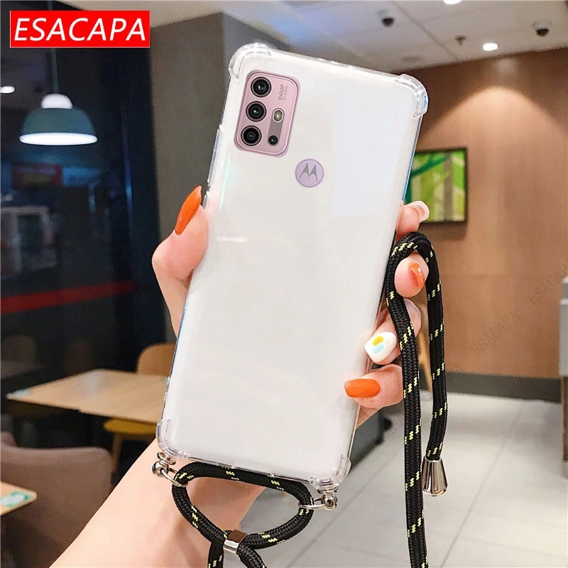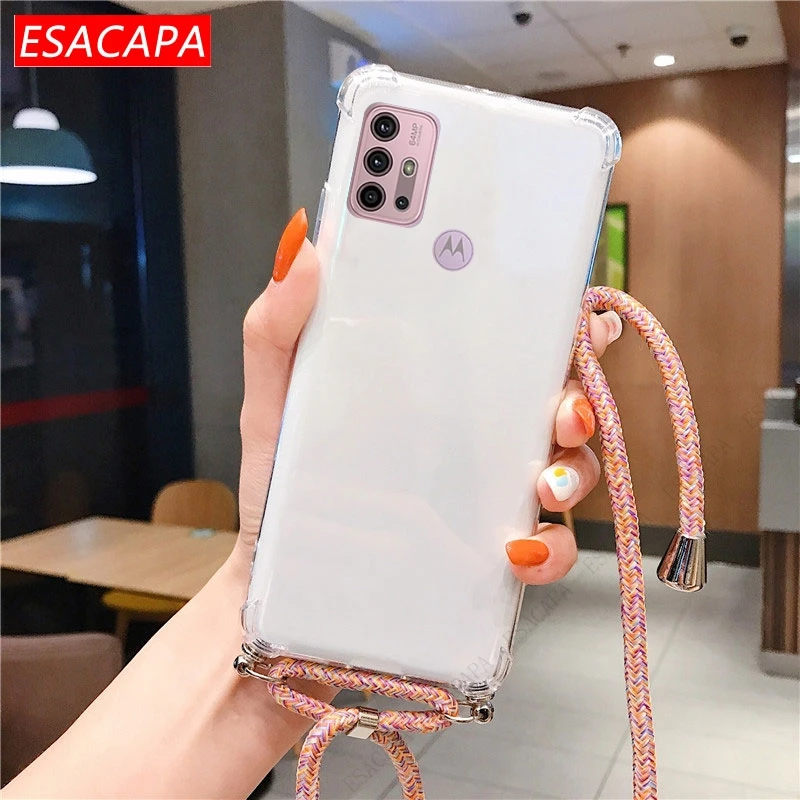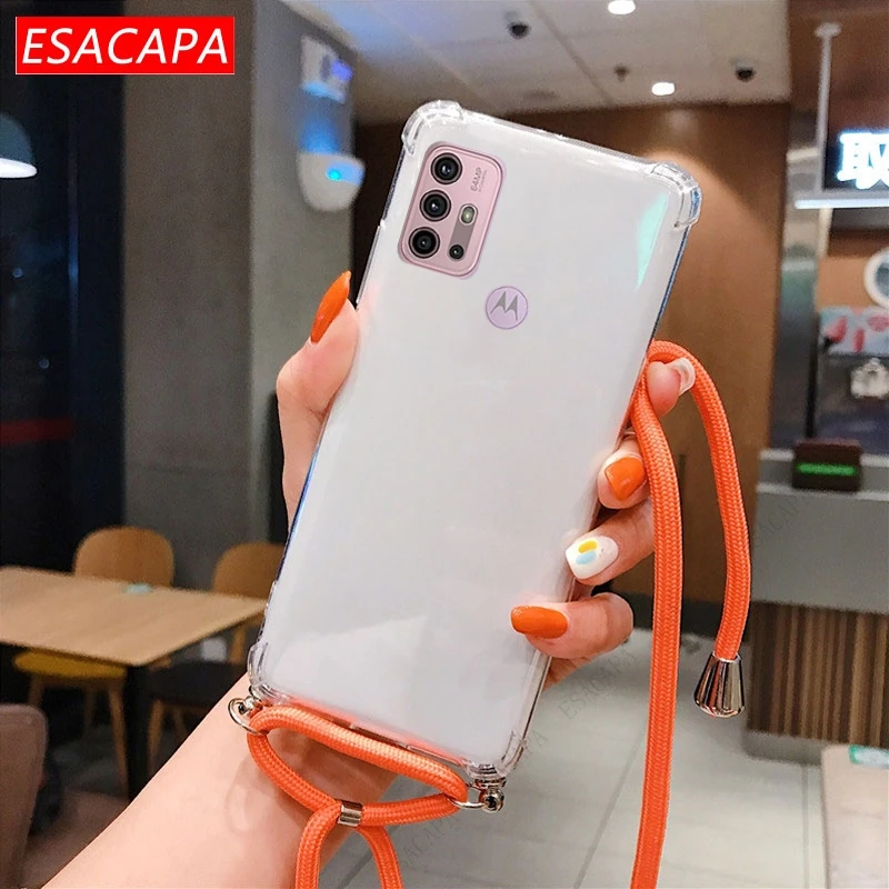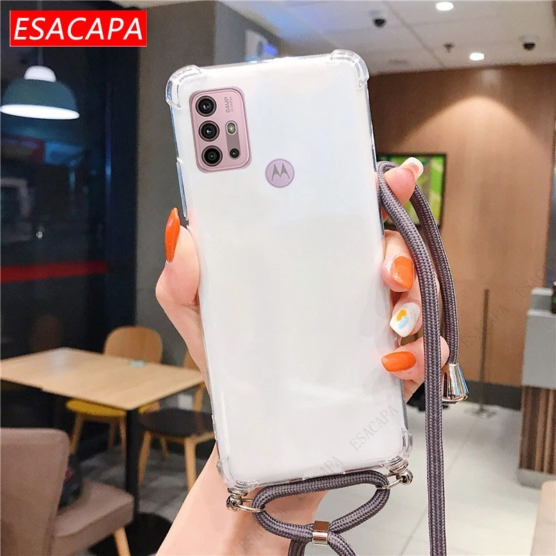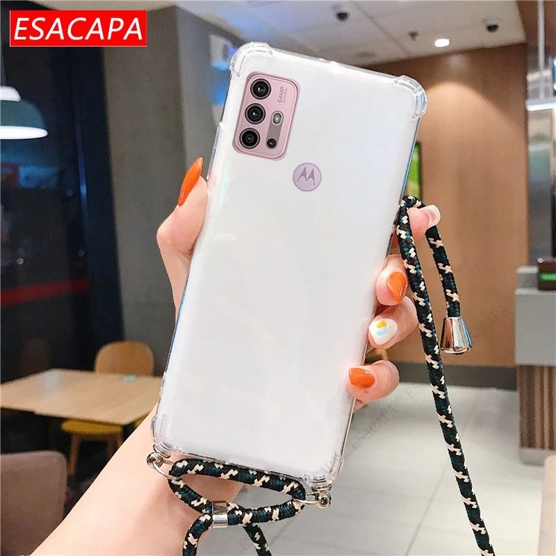 Чехол для телефона Moto G30 E7, Прозрачный ударопрочный чехол из ТПУ с ожерельем и ремешком через плечо для G Stylus 2021