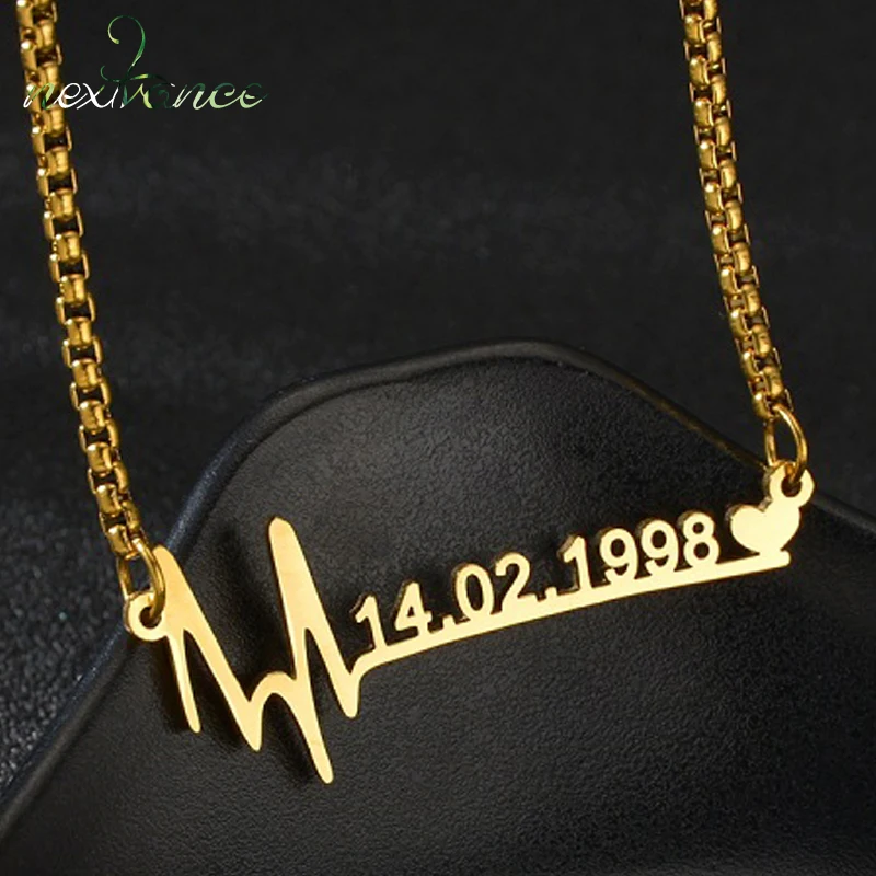 Ожерелье Nextvance из нержавеющей стали под заказ с именем ЭКГ, цепочка-панцирное ожерелье для женщин и мужчин, ювелирные изделия, подарки