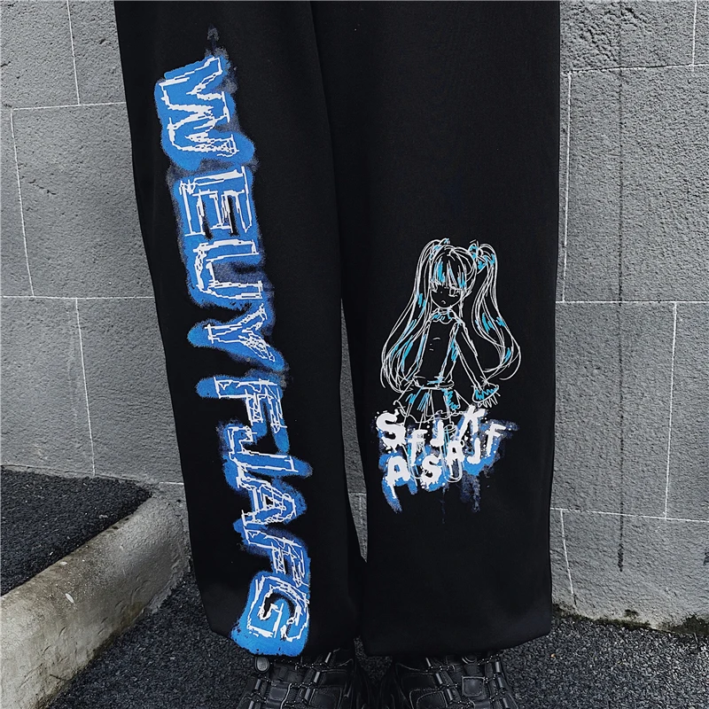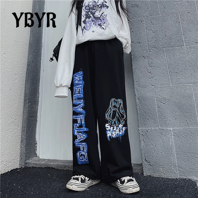 YBYR Harajuku женские брюки японский с рисунком и штаны в стиле хип-хоп Для женщин, свободные, широкие в ноге, штаны, мужские повседневные штаны для бега негабаритные длинные брюки для девочек