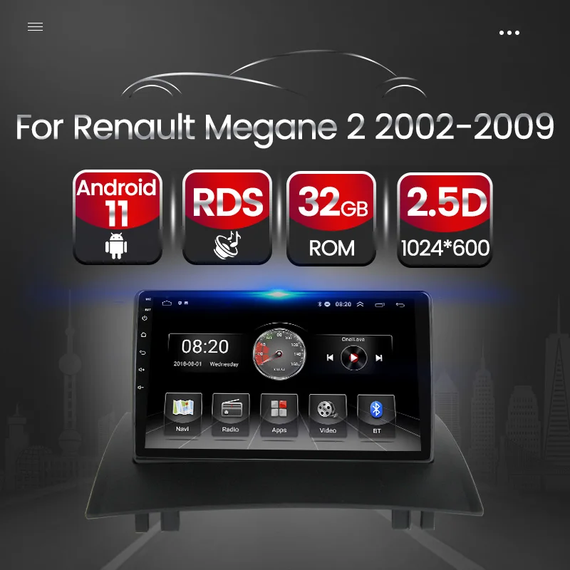 Автомагнитола Renault Megane 2, стерео-система на Android 11, с GPS-навигацией, Wi-Fi, без DVD, для Renault Megane 2 2002-2008, 2009, FMAM, типоразмер 2 Din