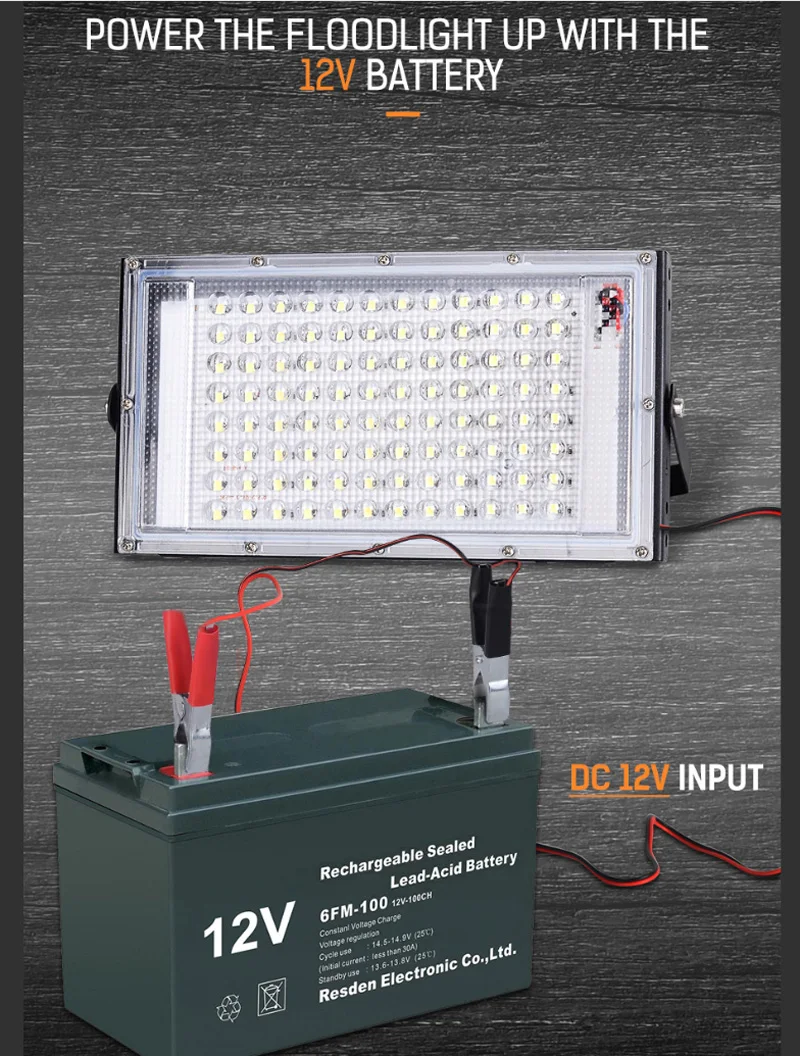 100W 50W низкого напряжения защищенный зажим «крокодил» прожектор 6500K холодный белый DC 12V
