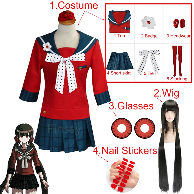Костюм для косплея харукава Маки из данганронпа на Хэллоуин, красные длинные носки, школьная форма для девочек старшей школы, юбка