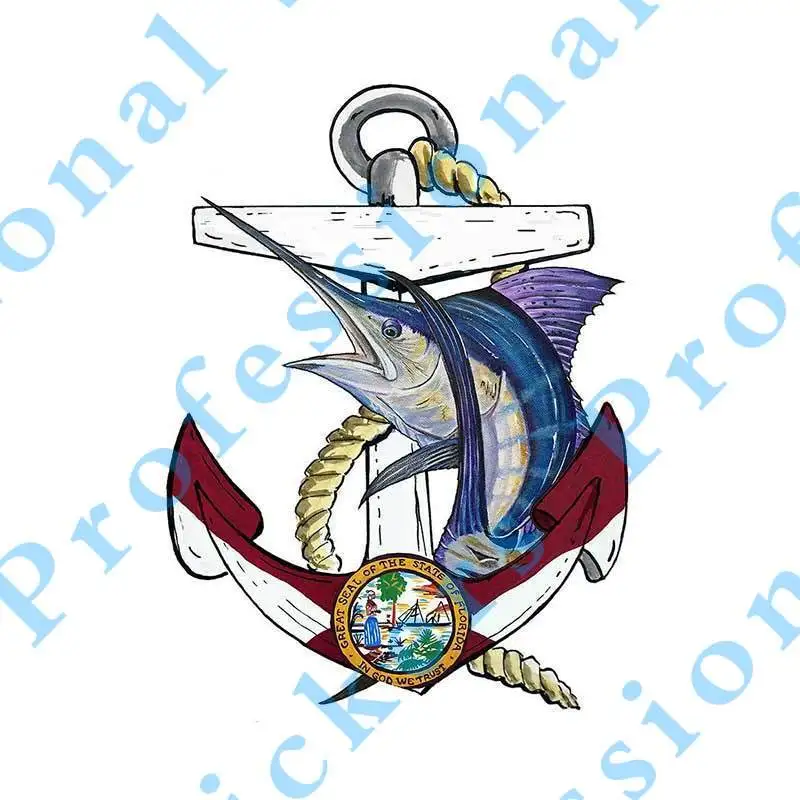 Забавный 13 см x 9,7 см якорь с флагом Флориды с Marlin виниловый Декаль для автомобиля грузовика RV Лодка Водонепроницаемый автомобильные мультипликационные наклейки графика