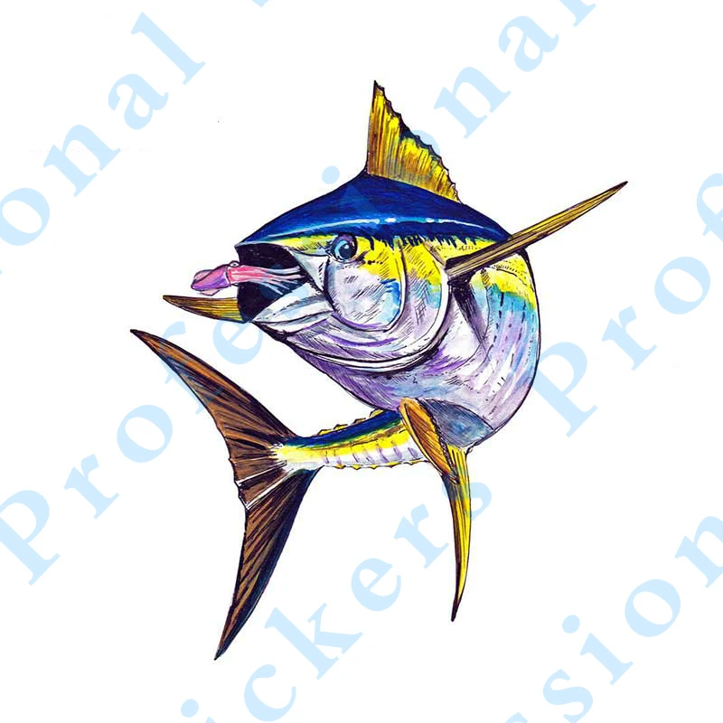 Забавный желтый плавник тунец рыба кальвидс наклейка на автомобиль ...