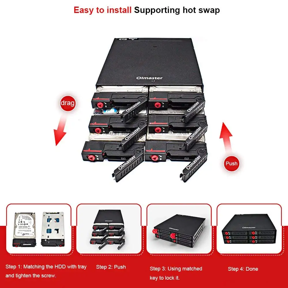 6-Bay 2,5 дюйма SATA SSD HDD горячей замены мобильный стеллажкорпус жесткий диск корпус-Стойка Хранения данных для 5,25 дисковода