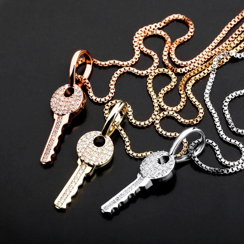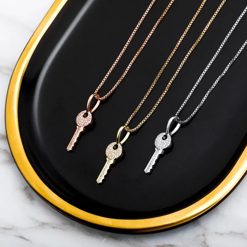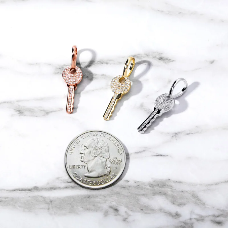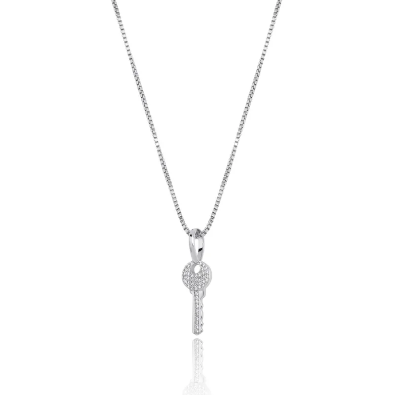 Женский кулон в виде ключа из серебра 925 пробы с цирконом