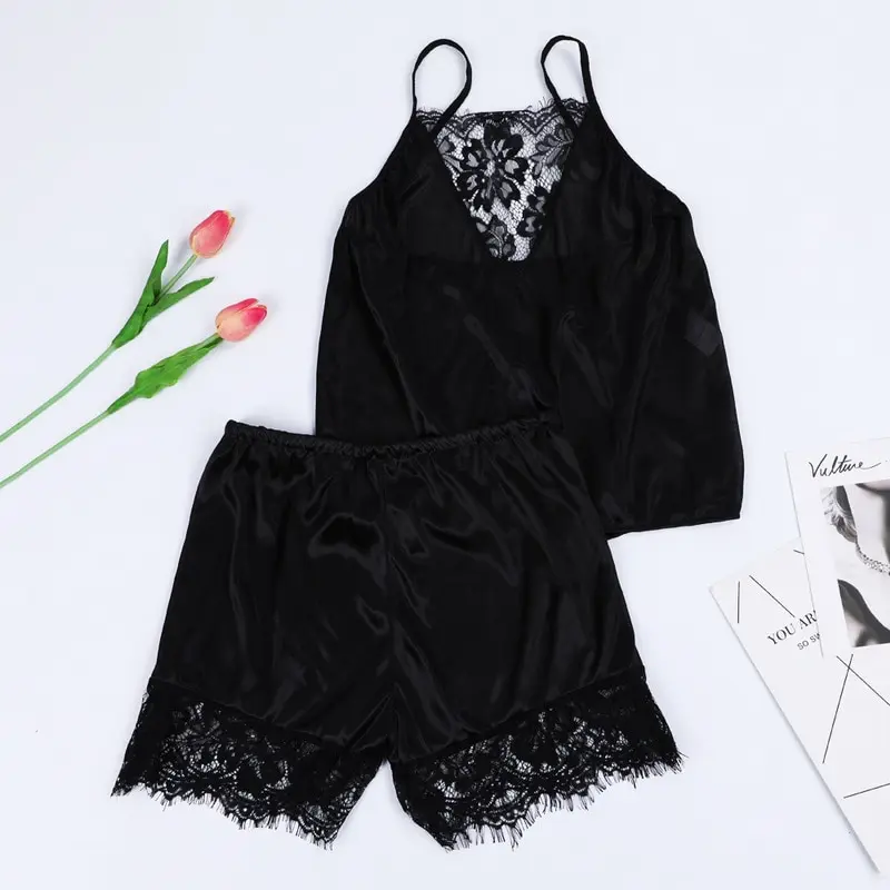 2021 пикантные Для женщин кружева пижамы для девочек, без рукавов, на лямках, одежда для сна, комплект из 2 предметов, отделка Атласный топ на бретельках, одежда для сна, ночные рубашки для девочек сексуальное женское белье Пижама Mujer