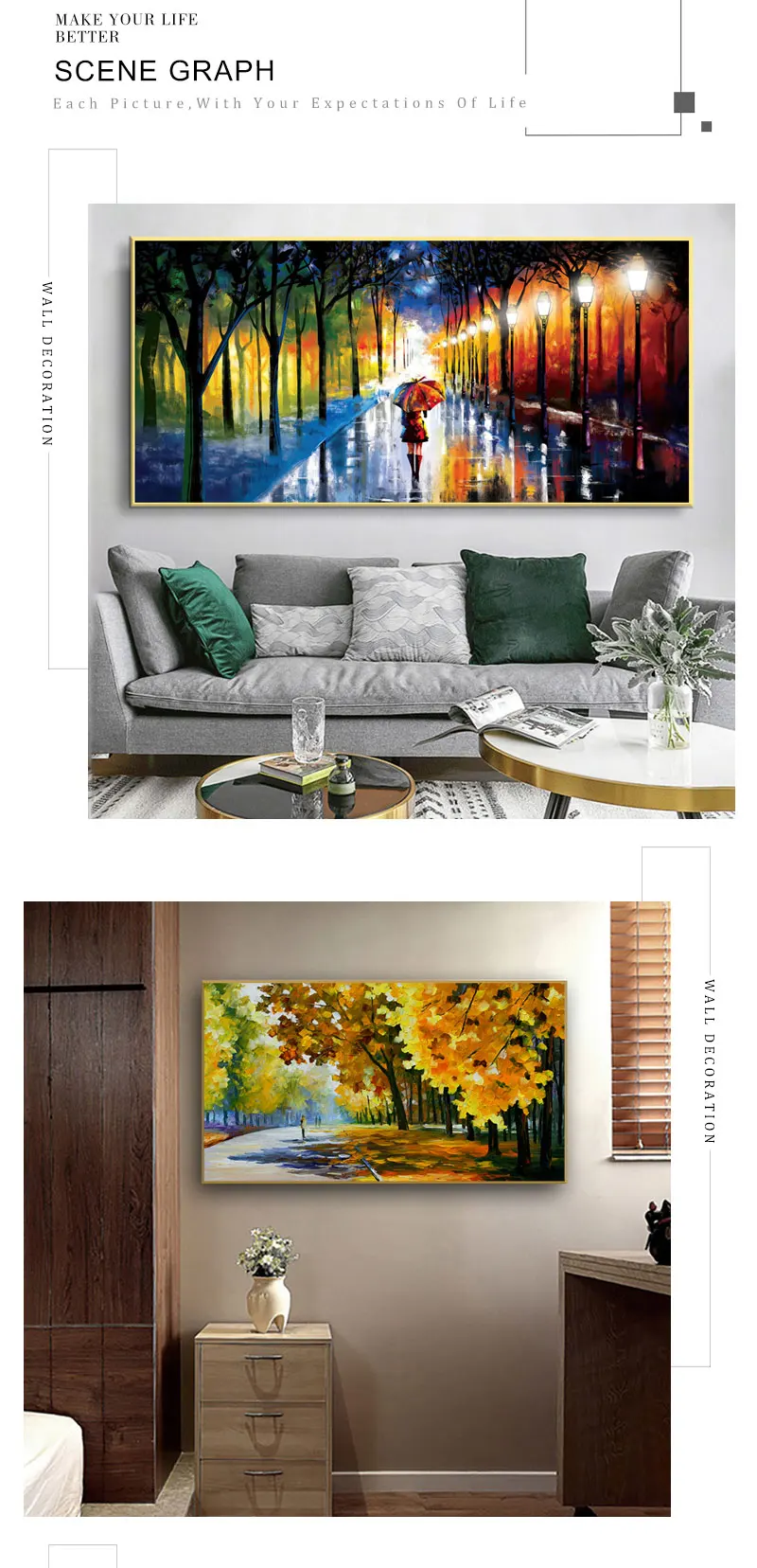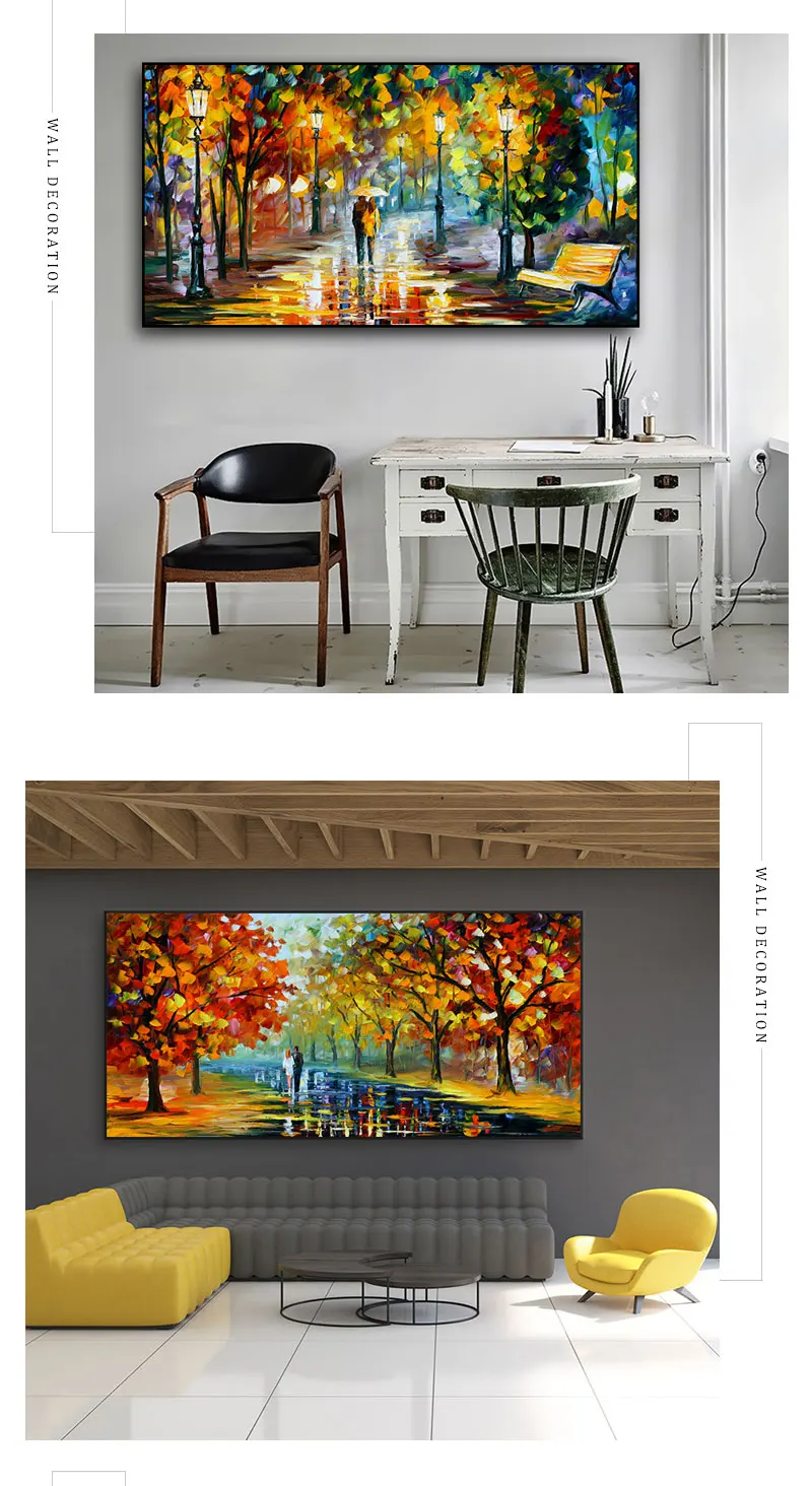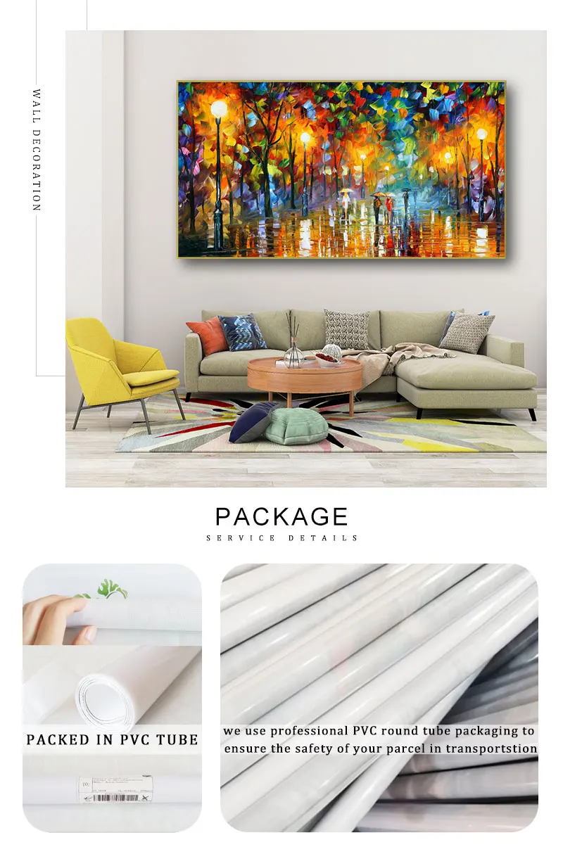 Постеры на холсте с принтом "Влюбленные с зонтиком", уличный пейзаж, картина маслом, цветные картины для гостиной