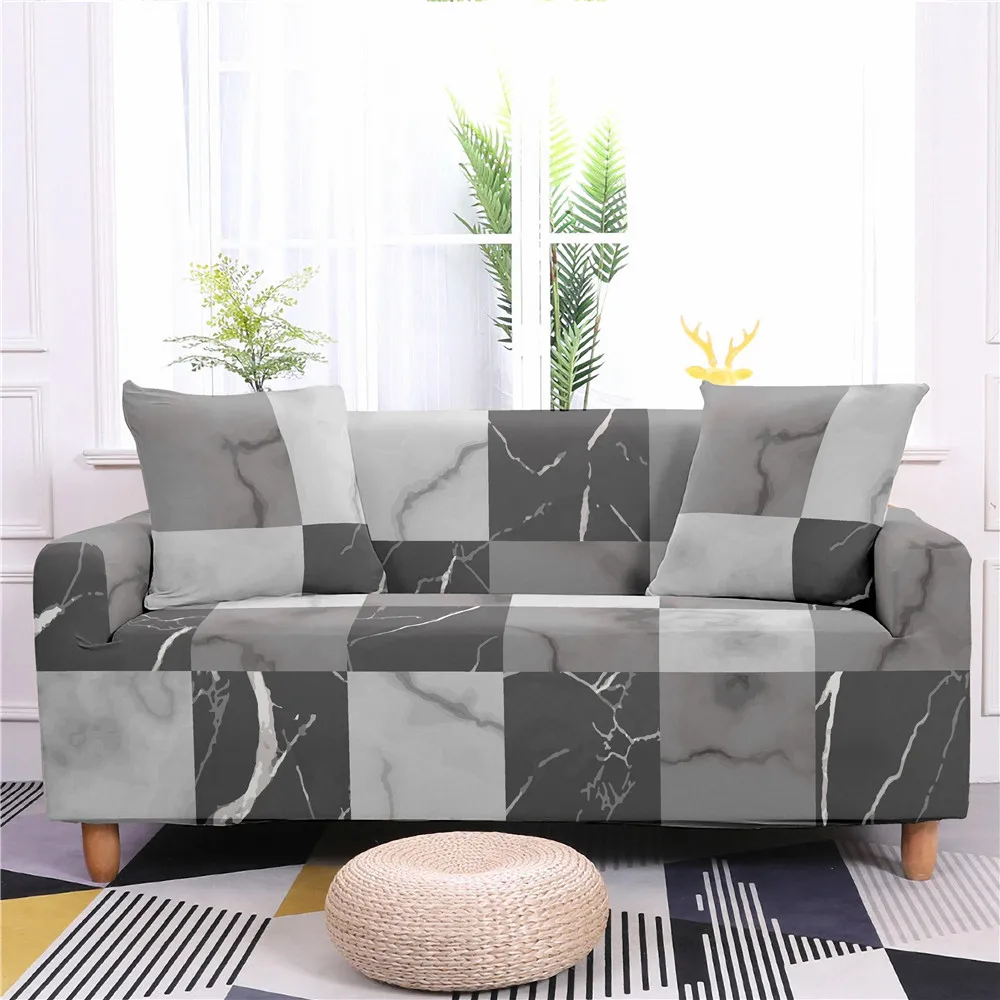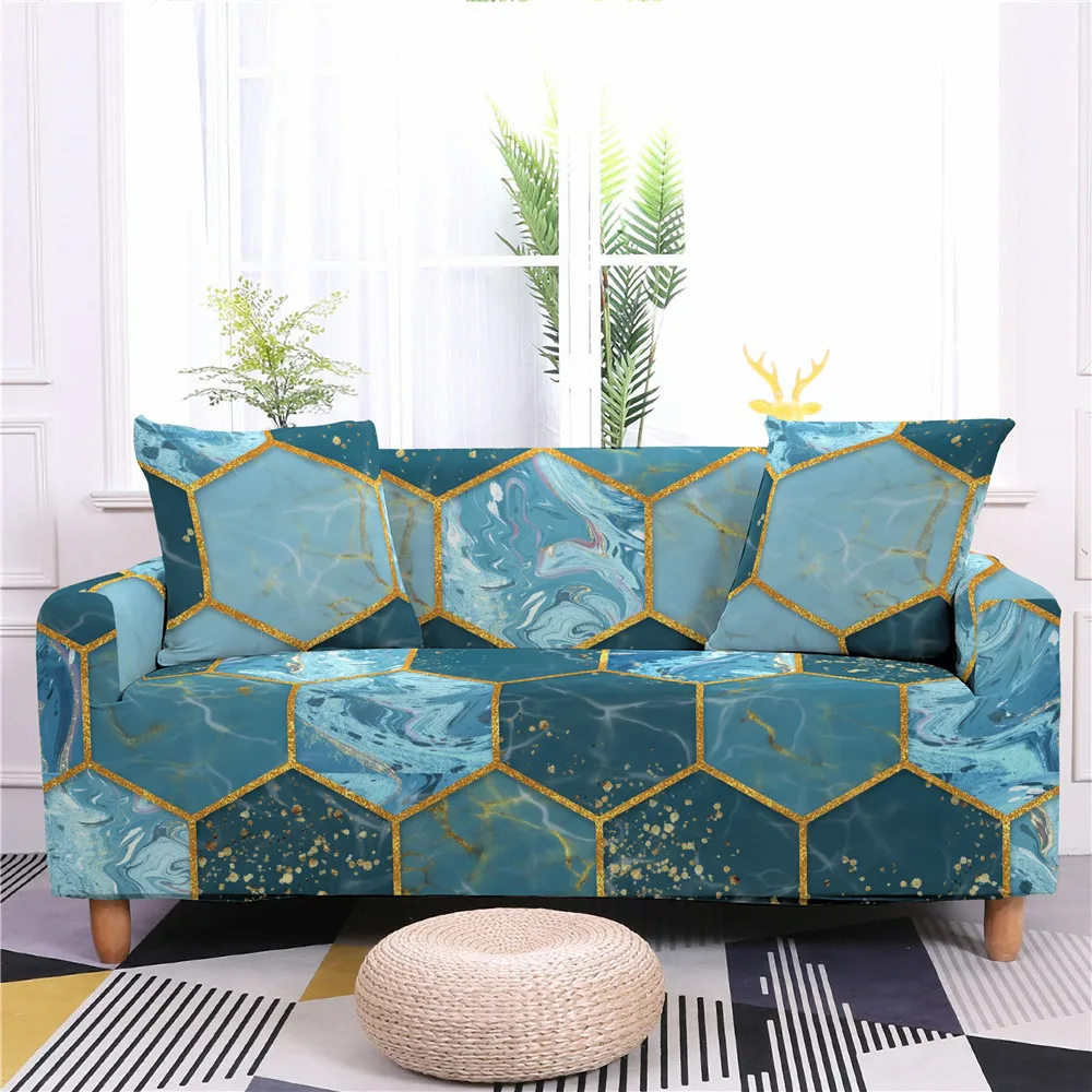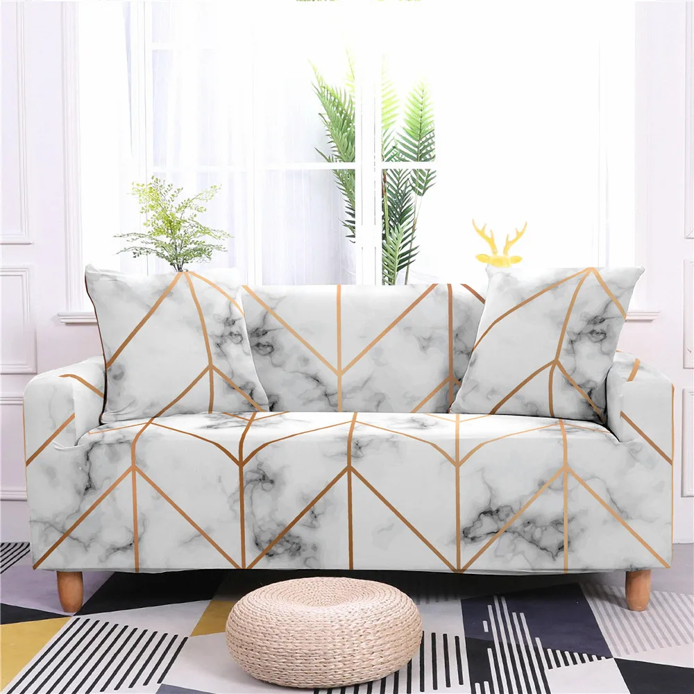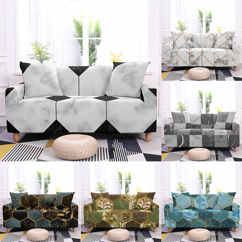 Чехол для дивана, эластичный, спандекс, с геометрическим мраморным принтом, Одноместный, Двухместный, Трехместный, нескользящий