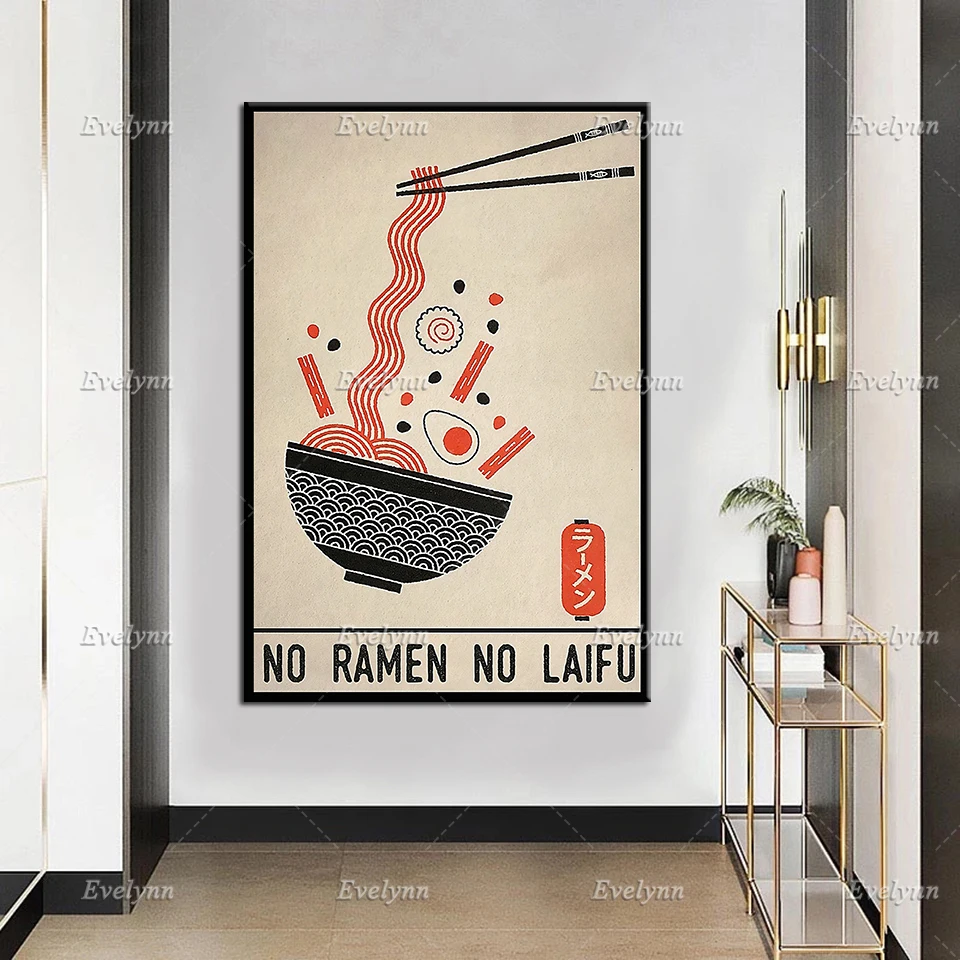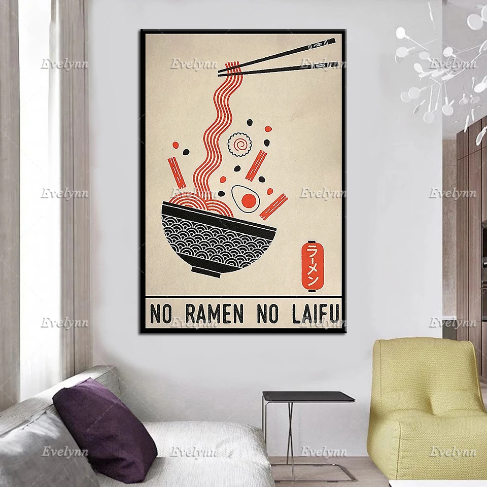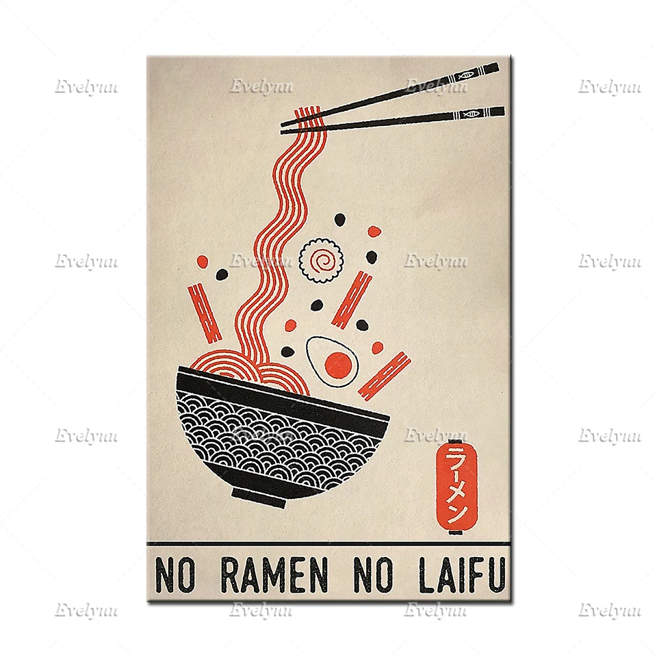 Ретро-постер на рамен, принты No Laifu без рамен, японский постер, японская лапша на холсте, кухонный Настенный декор, уникальный подарок