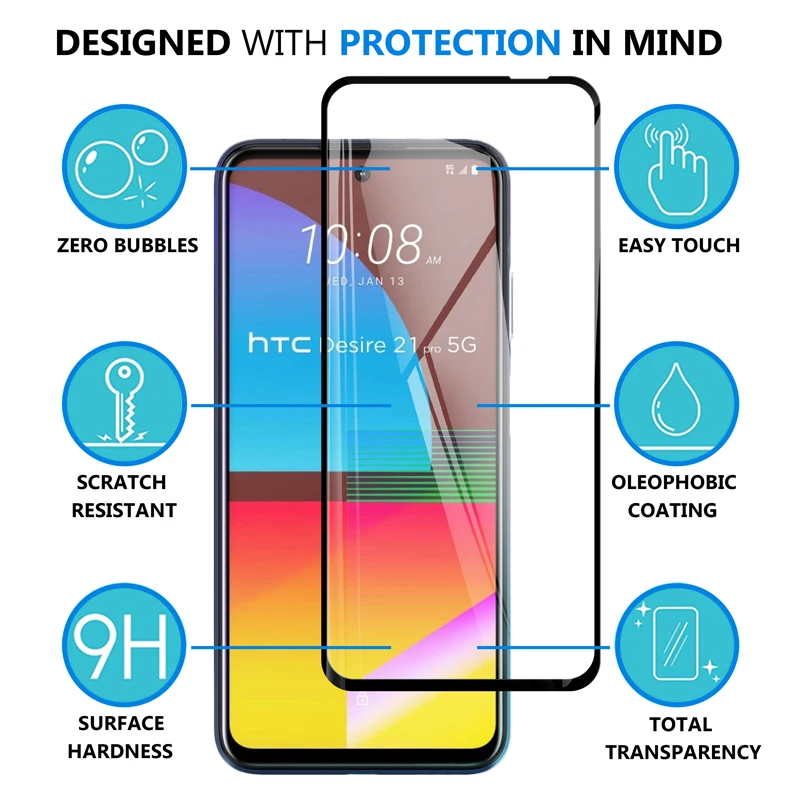 Для HTC Desire 21 Pro 5G 6,7"Защитная пленка из закаленного стекла с полным покрытием