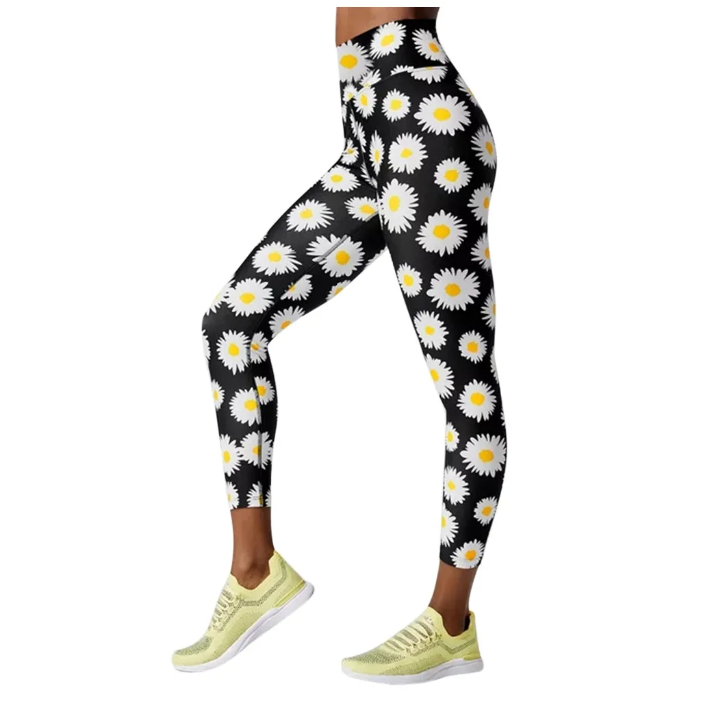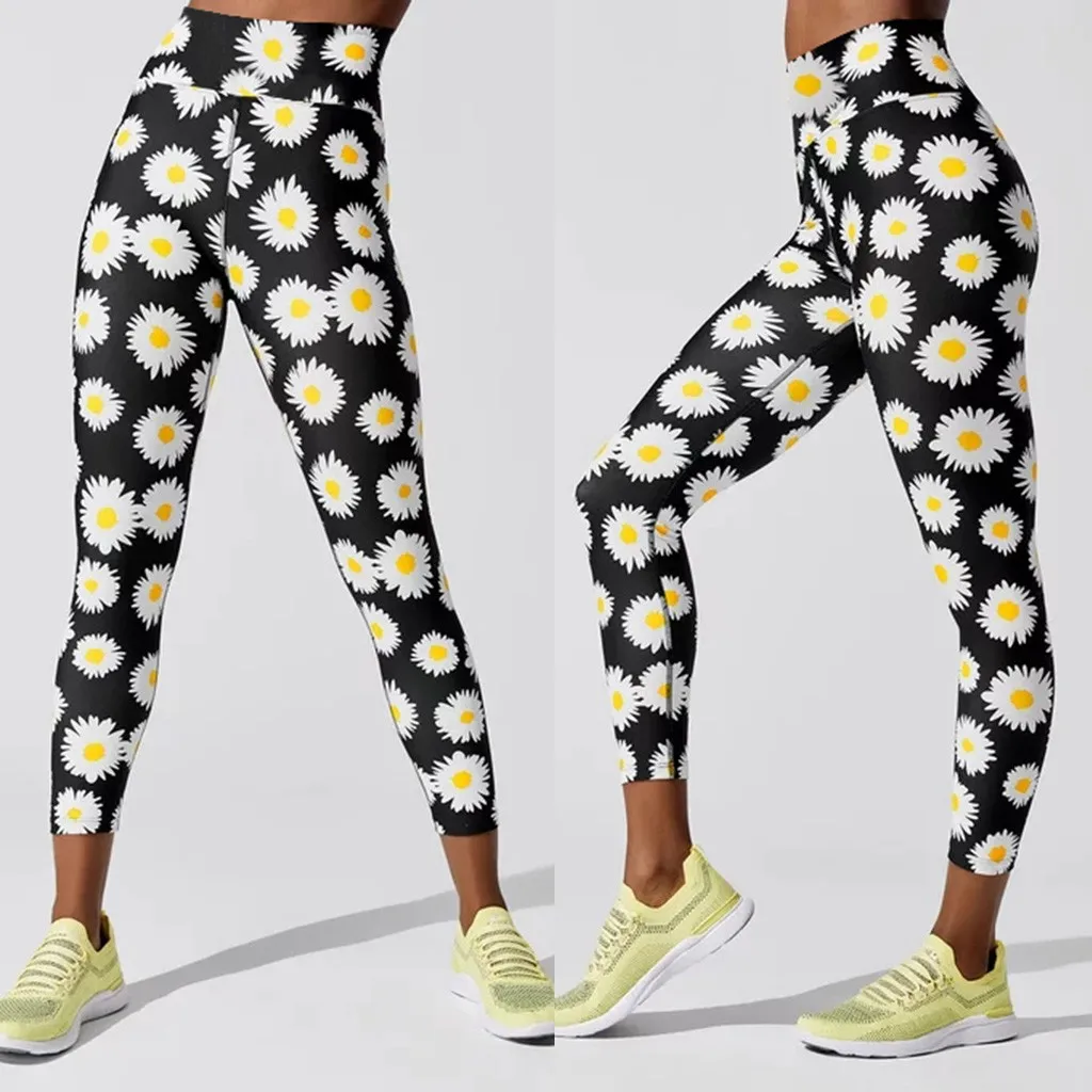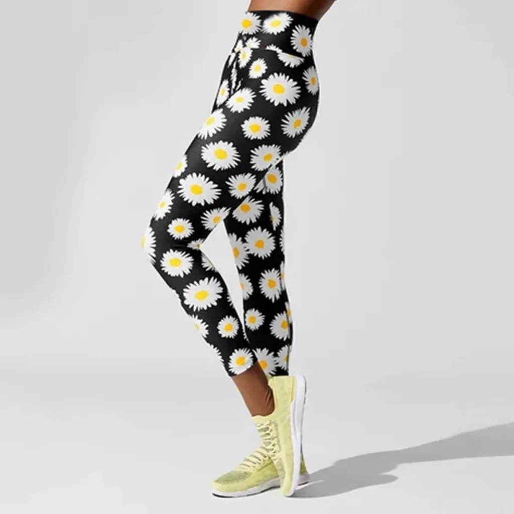 Леггинсы Спортивные Для женщин Фитнес Для женщин с принтом в виде подсолнухов Strethcy Фитнес леггинсы узкие спортивные штаны в стиле пэчворк Йога Брюки Лосины