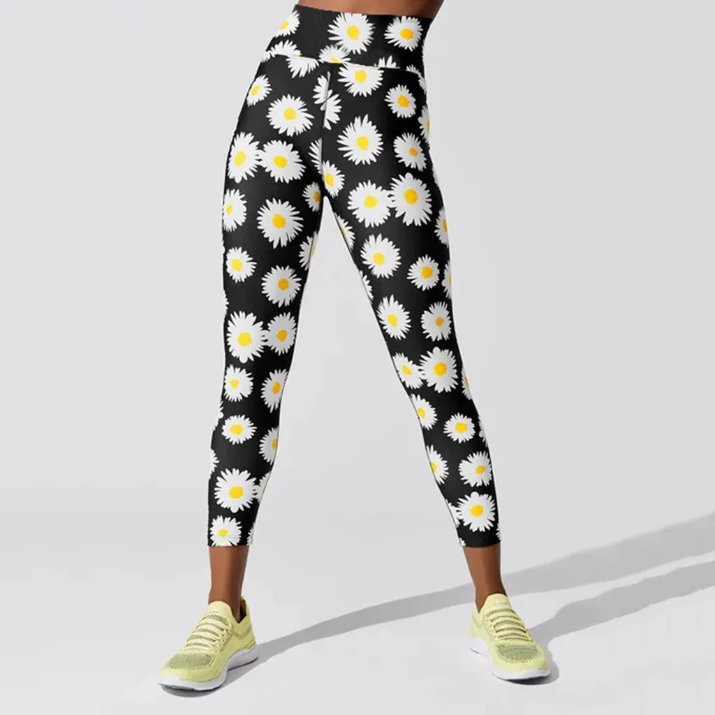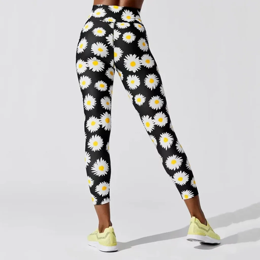 Женские леггинсы для фитнеса с принтом подсолнуха, обтягивающие спортивные штаны для йоги в стиле пэчворк