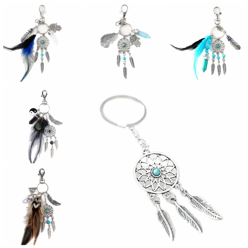 С перьями, ручной работы Dream брелок для ключей в виде Ловца снов Подвески с автомобилем ручной работы Chic подвесной орнамент ювелирные изделия брелок настенная подвесная Декорация