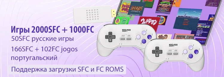 От детских развлечений и воспоминаний до этого контроллера для видеоигр — это хорошие воспоминания о поколении 80-х и 90-х годов. Этот игровой автомат тщательно собран из 3000 игр SFC + 50 игр RU + 166 игр Portugal. Беспроводной контроллер позволяет плавно играть в игры. Поддержите двух человек, чтобы они играли в войну, это очень весело! Контроллер с 6 функциональными кнопками, супер игровой опыт!