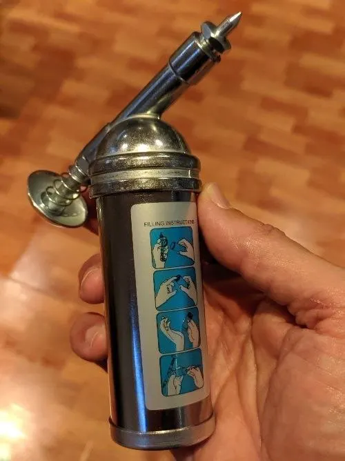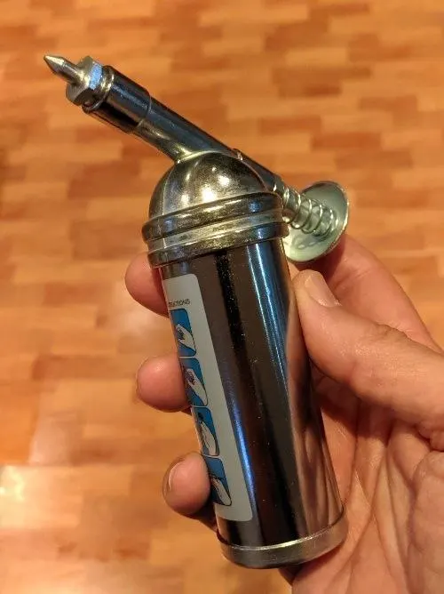 Mini pistolet à huile pratique pour sa taille. On peut huiler dans n'importe quelle position. Fonctionne très bien.