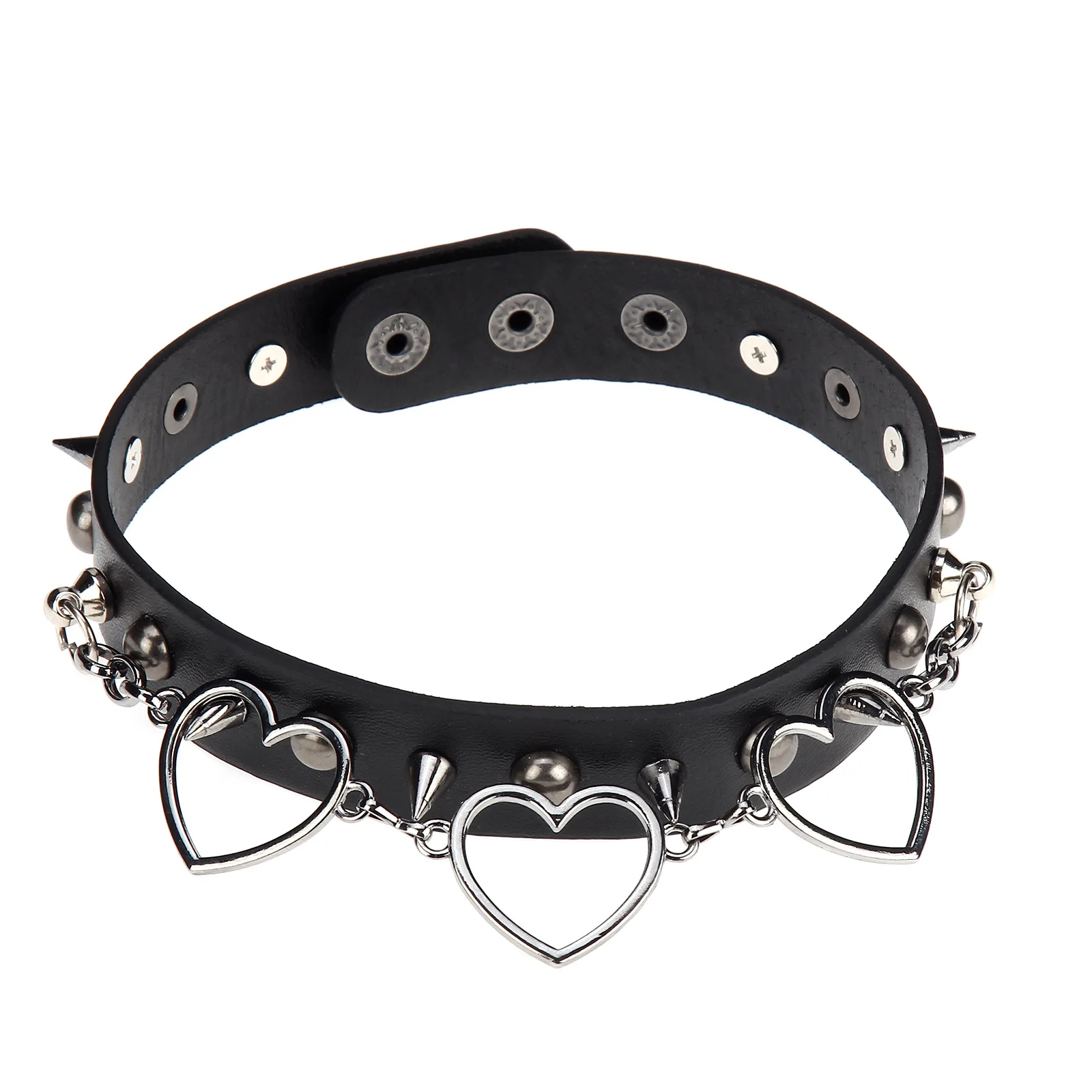 Ожерелье-чокер из искусственной кожи для мужчин и женщин, черное готическое ожерелье с заклепками в стиле эмопанк, с полыми сердечками, праздничное вечерние велирное украшение