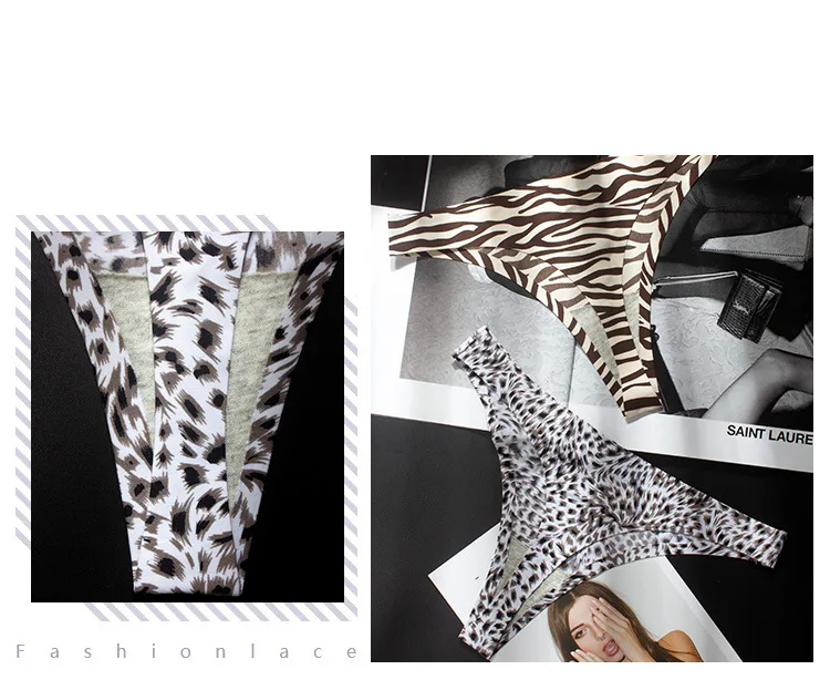 Стринги женские леопардовые бесшовные, пикантные шелковые трусики-стринги с принтом зебры, удобное нижнее белье