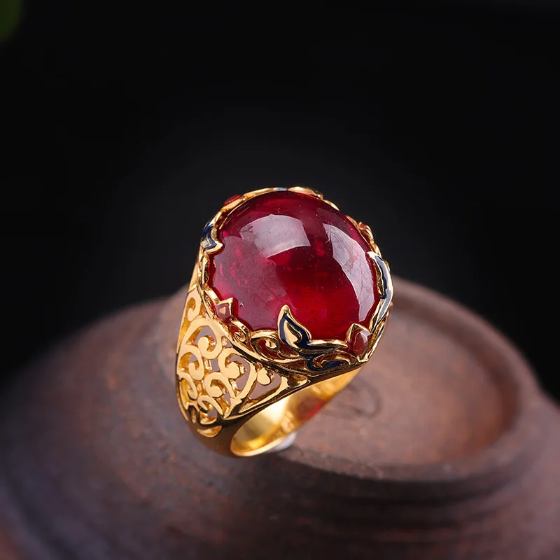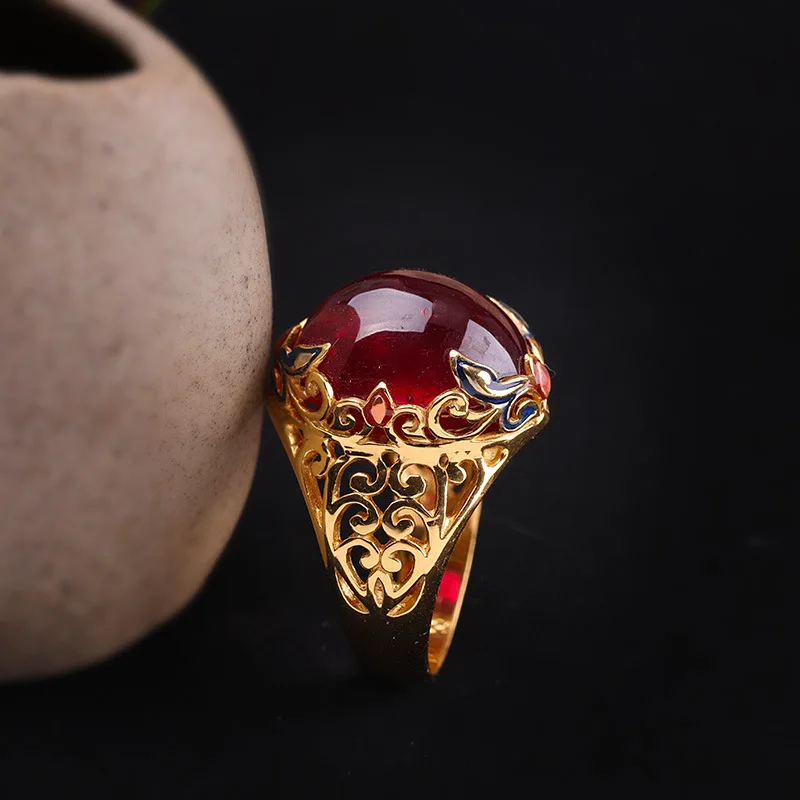Uglyless большой Размеры класса люкс с натуральным Рубином, кольца с драгоценными камнями для женщин полые лозы 925 Серебряные кольца в винтажном этническом стиле; Танкетка Рубин Ювелирные изделия из золота