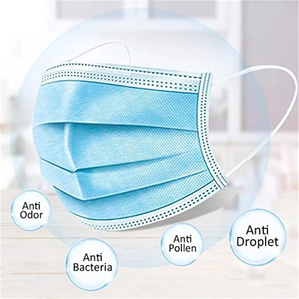 100 шт. синий одноразовые нетканые маски для лица 3 слоя для личног...