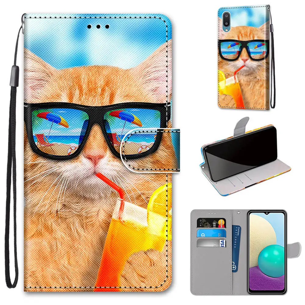 Брендированный флип-чехол из кожи для смартфона Samsung Galaxy A02 M02 A02S M02s A12 M12 A32 A52 A72 5G A01 Core чехол-книжка Бумажник Чехол аниме чехол для телефона