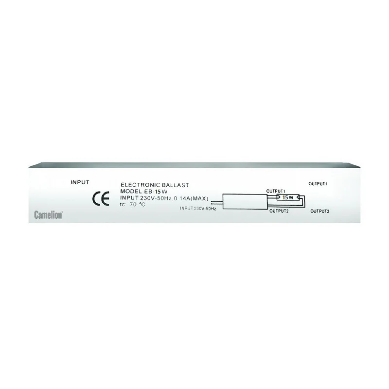 Пускорегулирующее устройство для люминесцентных ламп. Предназначен для подключения одновременно одной люминесцентной лампы Т8 мощностью 15/18/30/36 Вт. Электронный балласт преобразует сетевое напряжение (частотой 50 Гц) в высокочастотное (около 20-60 кГц), благодаря которому возможно питание лампы. Преимуществ электронного балласта: отсутствие мерцания и шума, также он намного меньше по размеру и легче в сравнении с его электромагнитным аналогом.