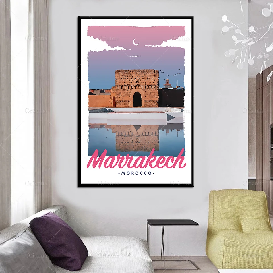 Ретро Винтаж Стиль плакат Marrakech Марокко постеры с масляной живописью и печать на холсте искусство стены Модульная картина домашний декор