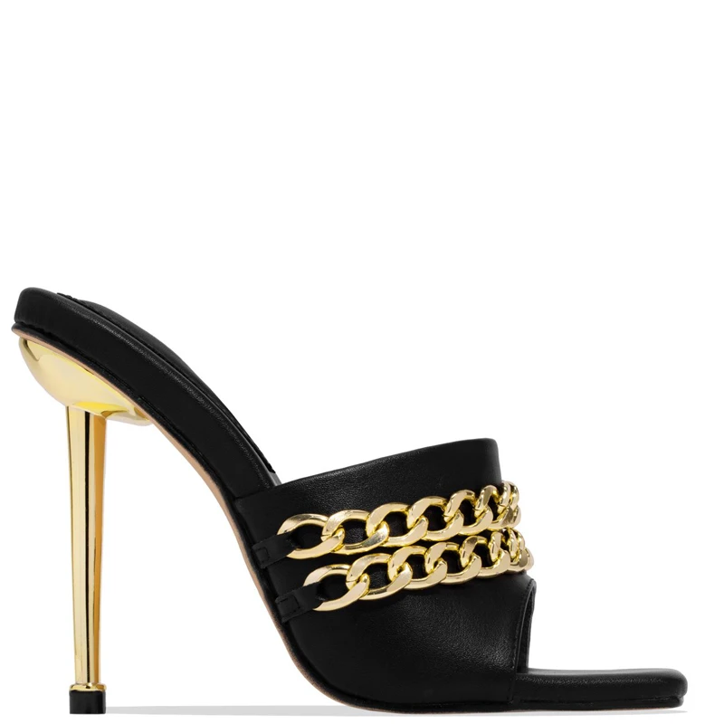 Женские сандалии-гладиаторы, брендовые дизайнерские Элегантные пляжные туфли с цепочкой и квадратным носком на тонком высоком каблуке, летняя Уличная обувь, сандалии для вечеринки