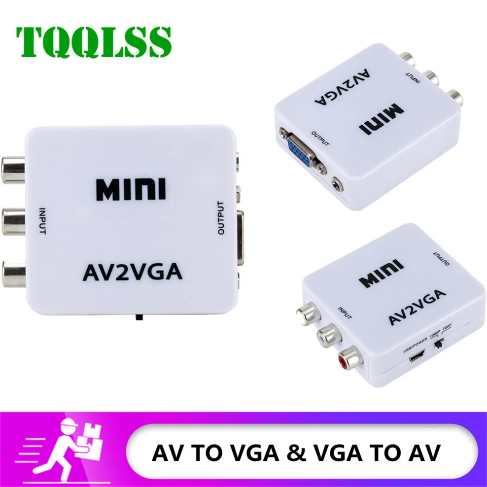 Мини-преобразователь RCA в VGA AV2VGA VGA2AV, преобразователь с 3,5 мм аудио RCA в VGA, видео преобразователь для ПК на ТВ HD, компьютера на ТВ