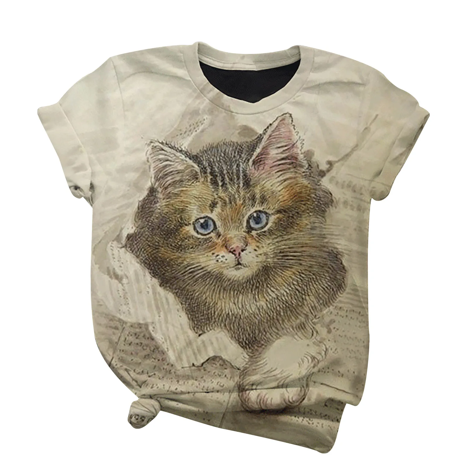 Модная женская футболка, женская летняя повседневная футболка с круглым вырезом и коротким рукавом, топ с 3d-изображением кота и цифровым принтом, женские футболки