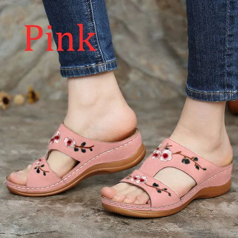 Сандалии женские с цветочной вышивкой, Нескользящие шлепанцы, пляжн...