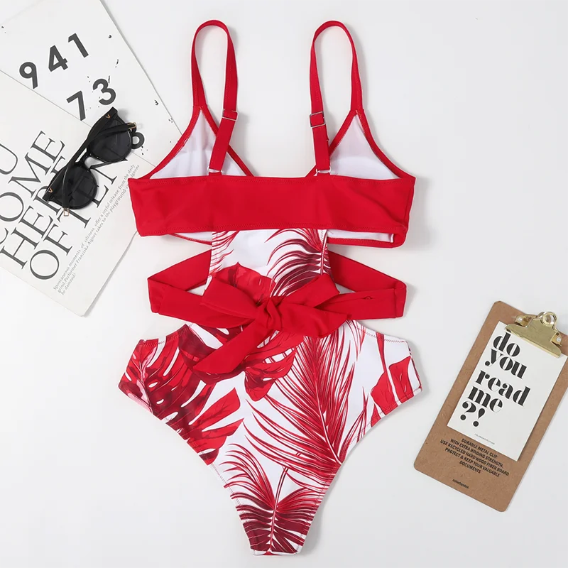Купальник цельный бикини треугольный сексуальный купальник с перекрестными лямками купальник с высокой талией купальник с принтом листьев Лето 2021 пляжный купальник