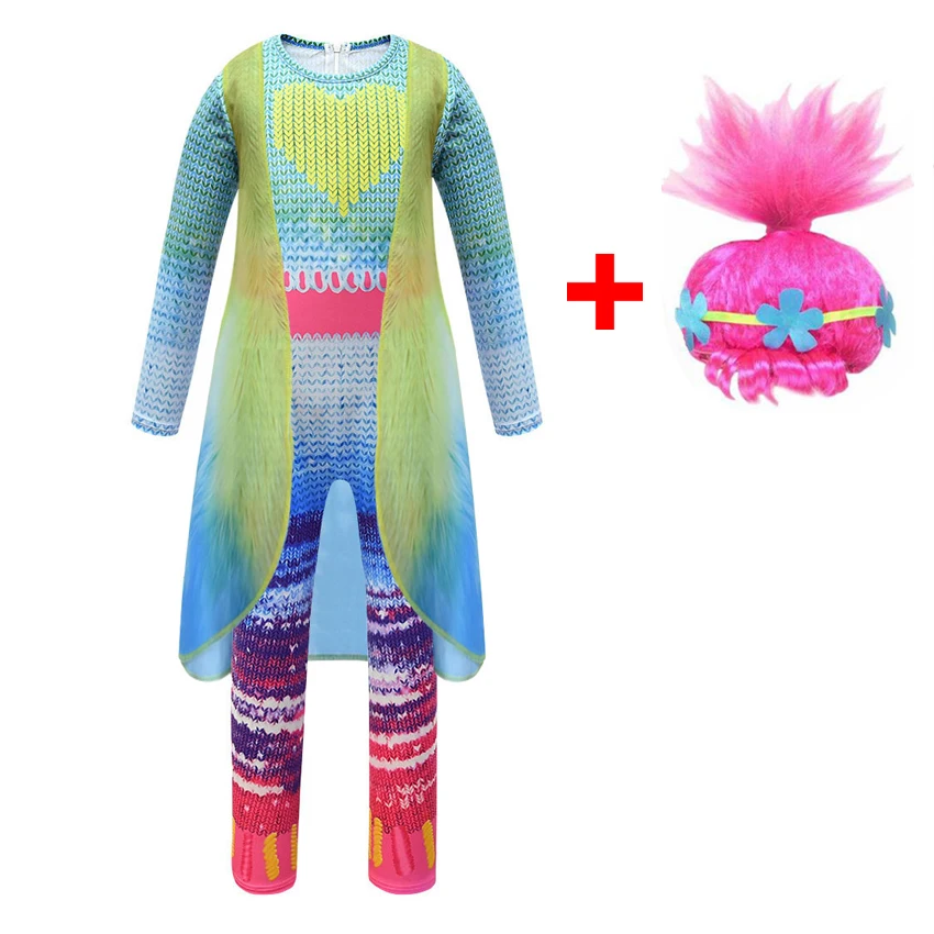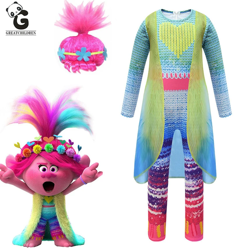Маковые костюмы для девочек с троллями, маковые Комбинезоны для троллей, детские костюмы на Хэллоуин, детский жилет, карнавальный наряд, парик для девочек