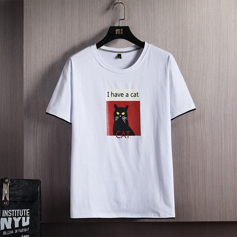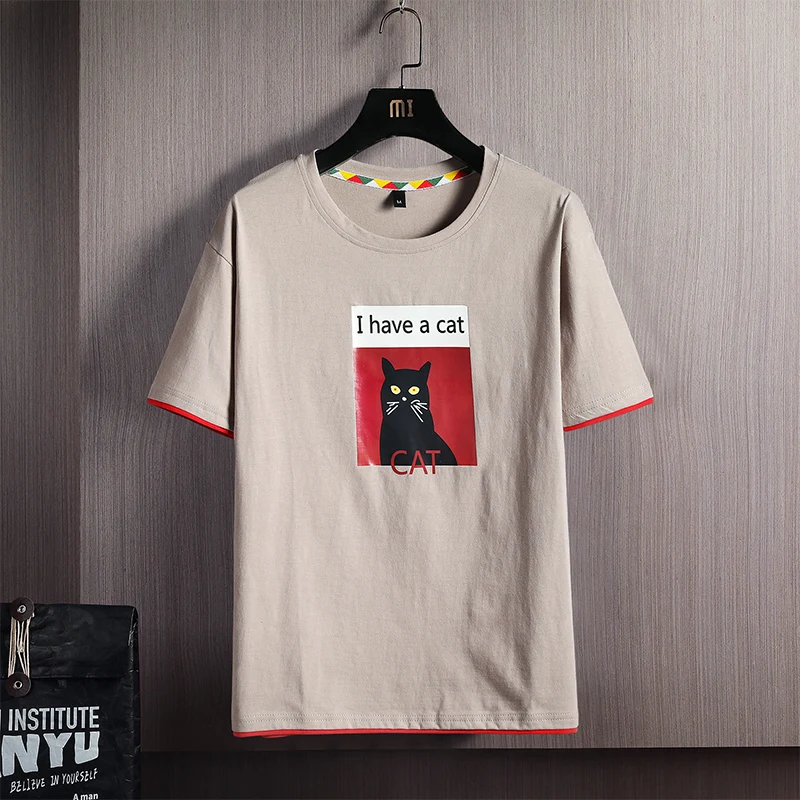 Мужская рубашка с рисунком кошки Стиль 2021 свободного кроя с корот...