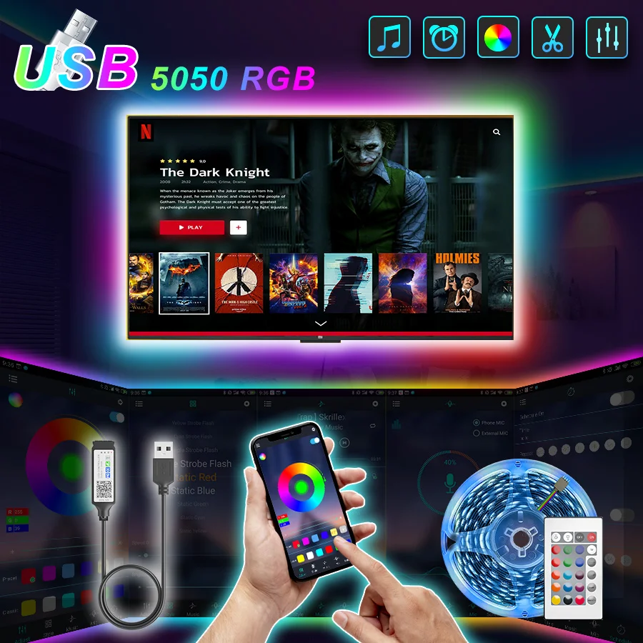 Светодиодная лента 5050 с поддержкой Bluetooth, USB, SMD, 5 В, RGB,...