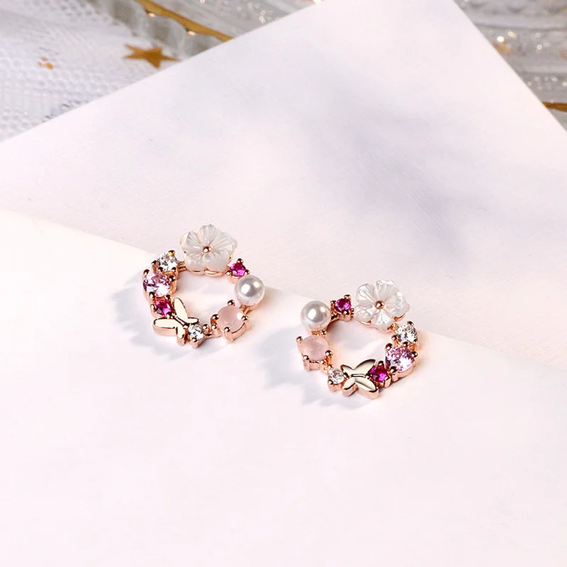 Романтические свадебные серьги-гвоздики в виде цветка сакуры, детальные Кристальные Жемчужные бабочки, милые Lyrical женские серьги, пирсинг, ювелирные изделия, подарки