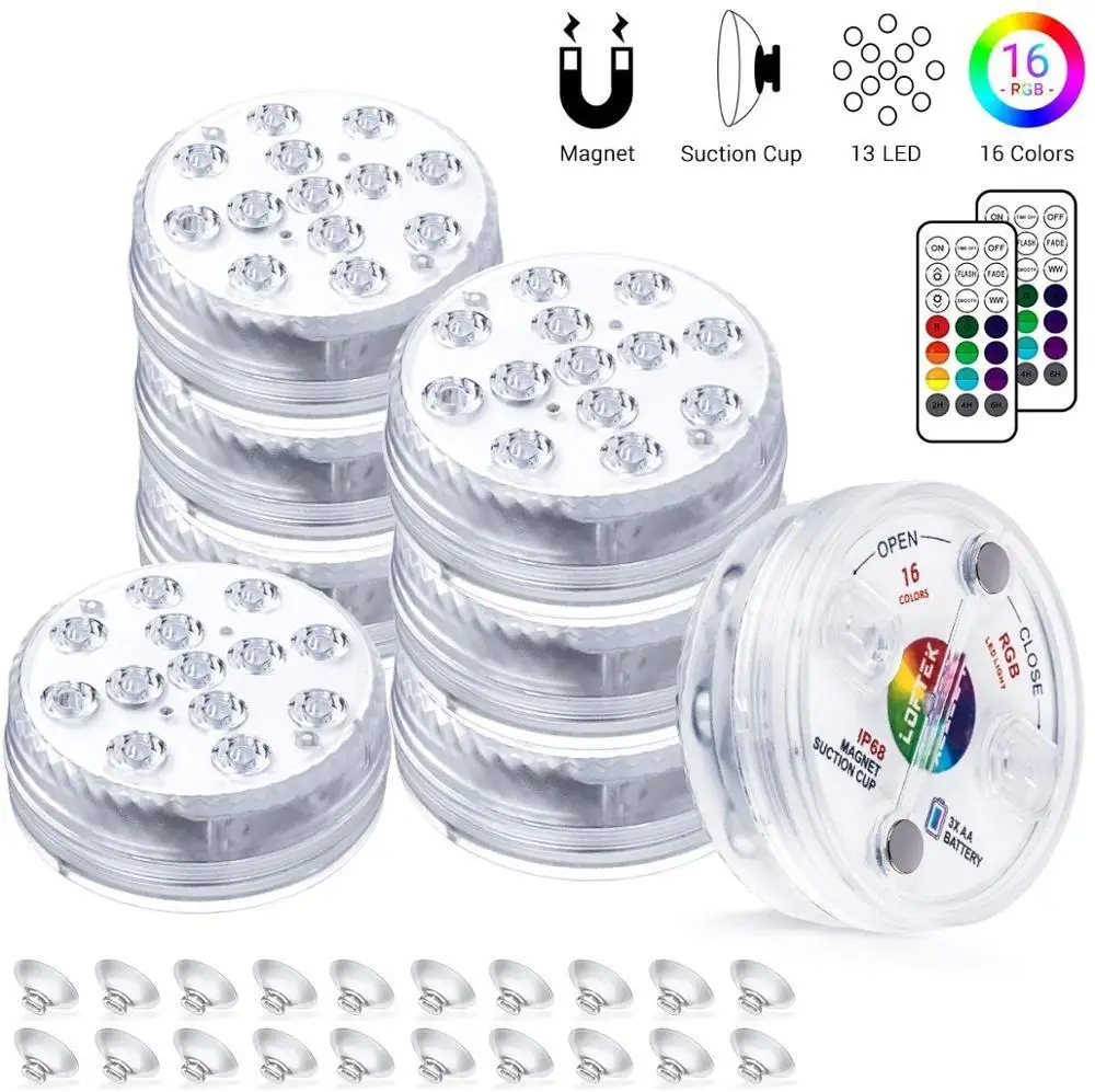 Подводный светильник, 13 светодиодов, 16 цветов, RGB, IP68, водонепроницаемый светильник для бассейна, Радиочастотный пульт дистанционного управления, погружной светильник для пруда, вазы