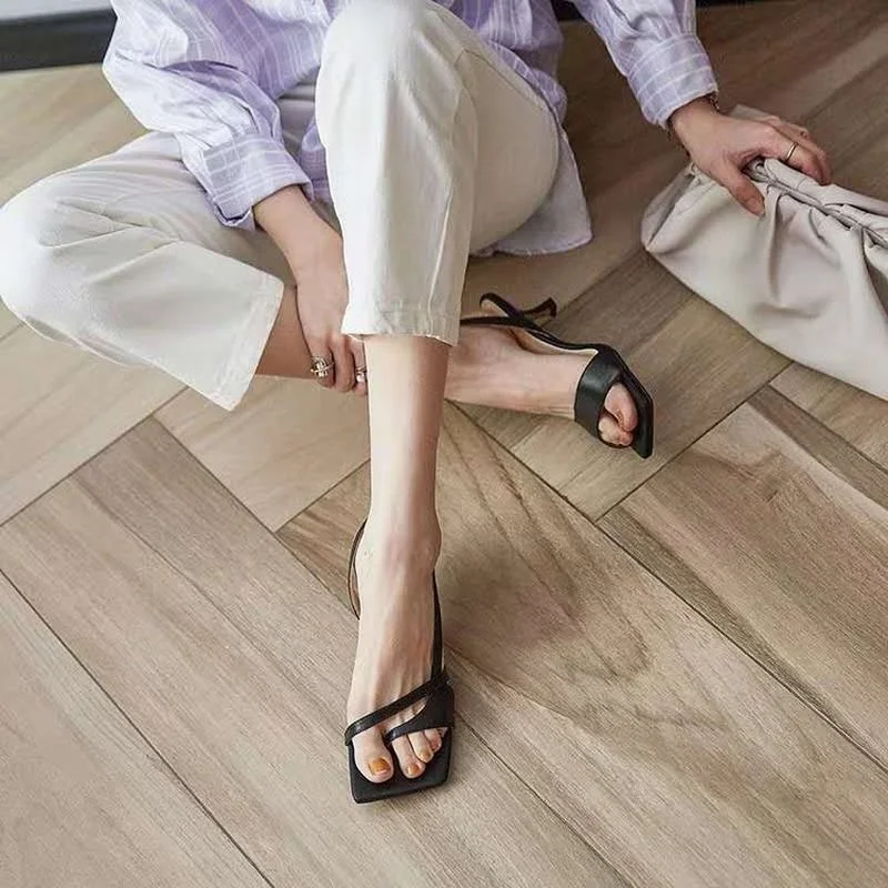 Сандалии женские на высоком каблуке, босоножки на ремешках, квадратный носок, открытый носок, обувь на осень