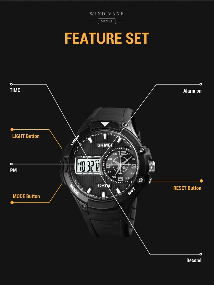 Часы наручные SKMEI Мужские кварцевые с двойным дисплеем, цифровые ...