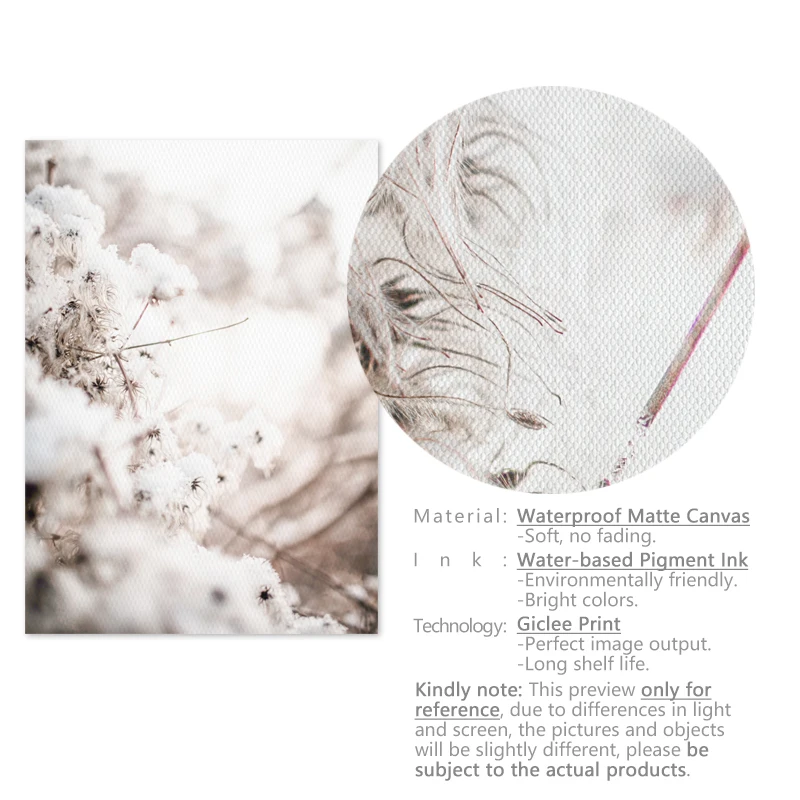 Холст плакат печать картина зимний пейзаж увядший цветок растения ф...