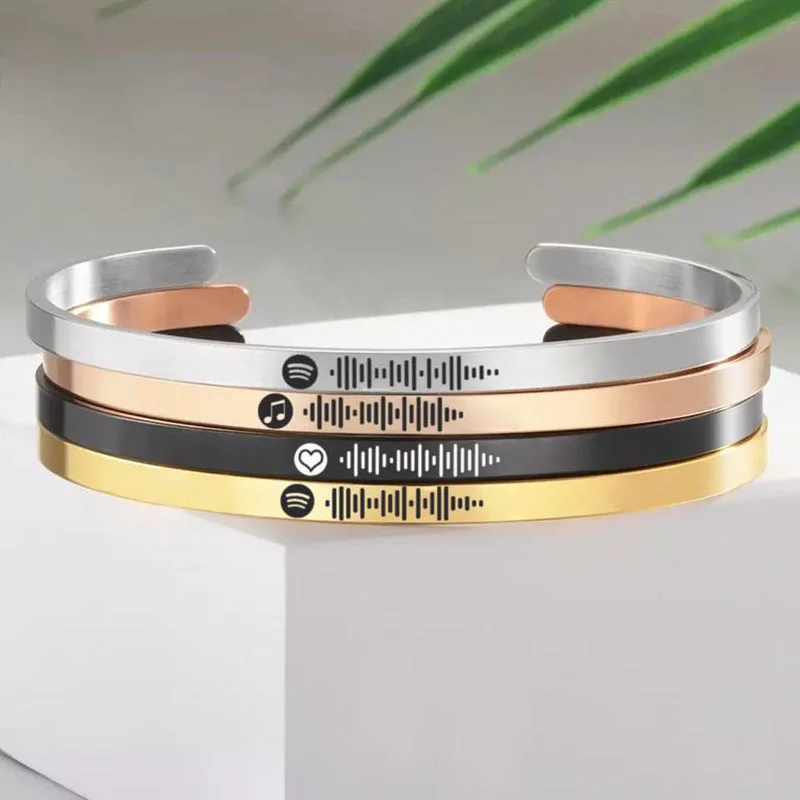 Персонализированные музыка Spotify сканирования код манжеты браслет, женский браслет, нержавеющая сталь, браслет на заказ лазерная гравировка Spotify код ювелирные изделия