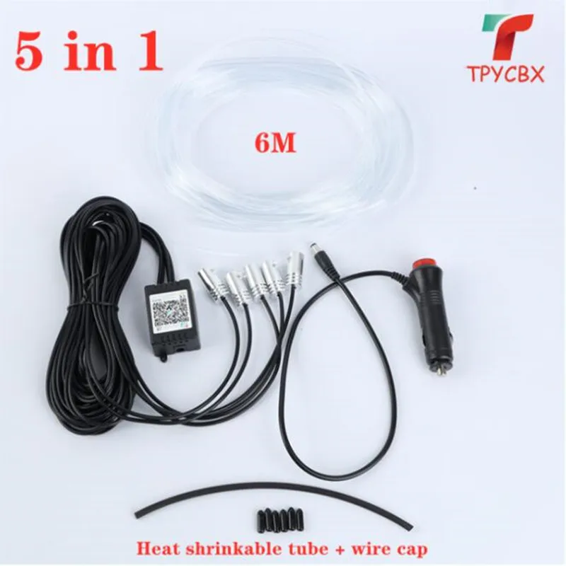 5 в 1 RGB светодиодный автомобильный светильник Интерьер окружающего светильник волоконно-оптический полоски светильник приложение Управление музыкальный плеер 8M волоконно-оптического диапазона автомобильные аксессуары