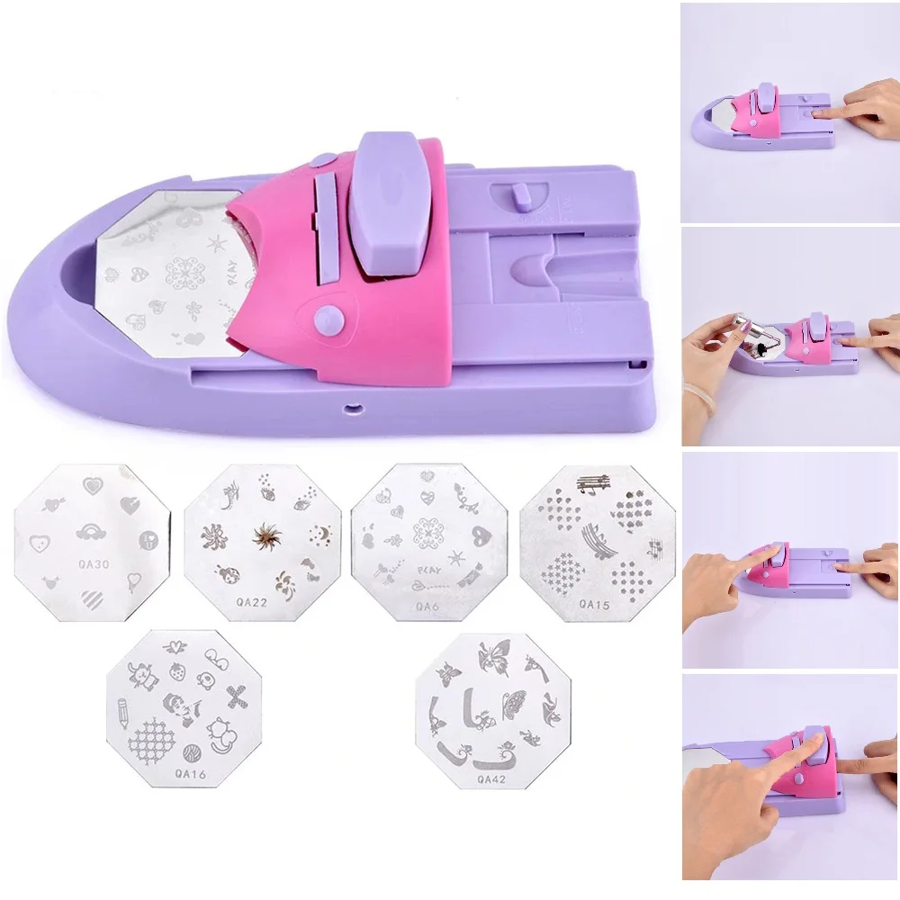 Аппарат для маникюра с 6 штампами по металлу, штамп для ногтей, 1 шт.