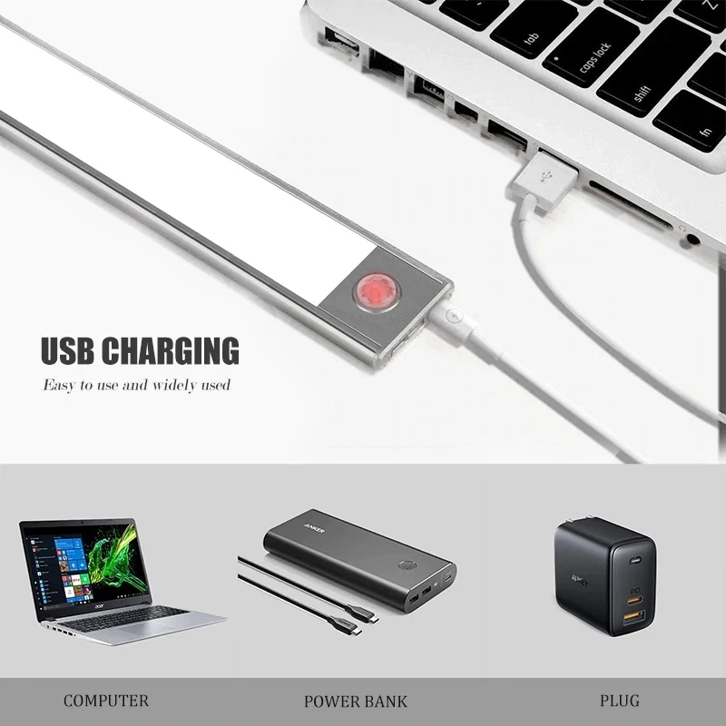 Горячая Распродажа ультратонкий светильник 20 см 40 см 60 см 80 см светодиодный USB индукционный ночник ручной датчик движения подметания под светильник для шкафа светильник шкафа