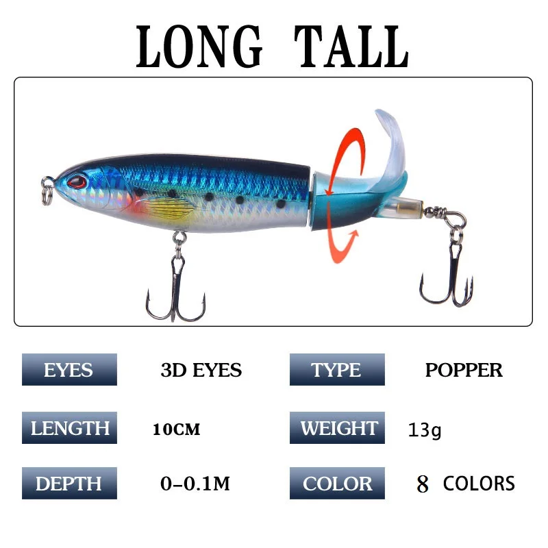 1 шт., качественный воблер 10 см13 г, Поппер для воды, жесткая приманка для рыбалки, вращающиеся мягкие рыболовные снасти