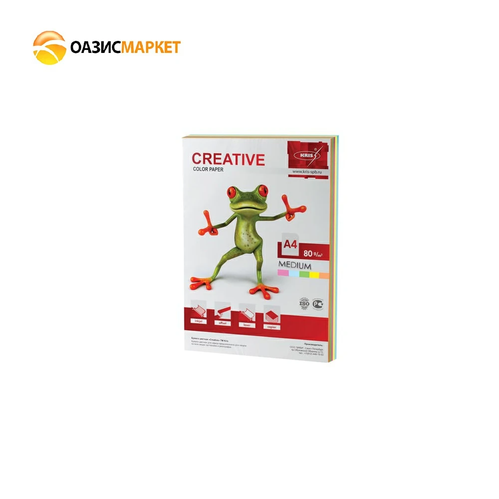 Бумага цветная CREATIVE color (Креатив) А4, 80 гм2, 100 л., (5 цветов х 20 листов), микс медиум, БОpr-100r