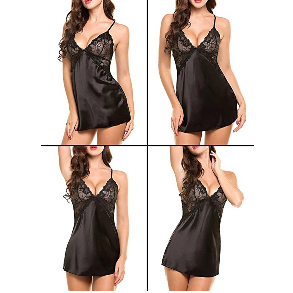 Ночные рубашки женские атласные кружевные женское белье, сексуальна...