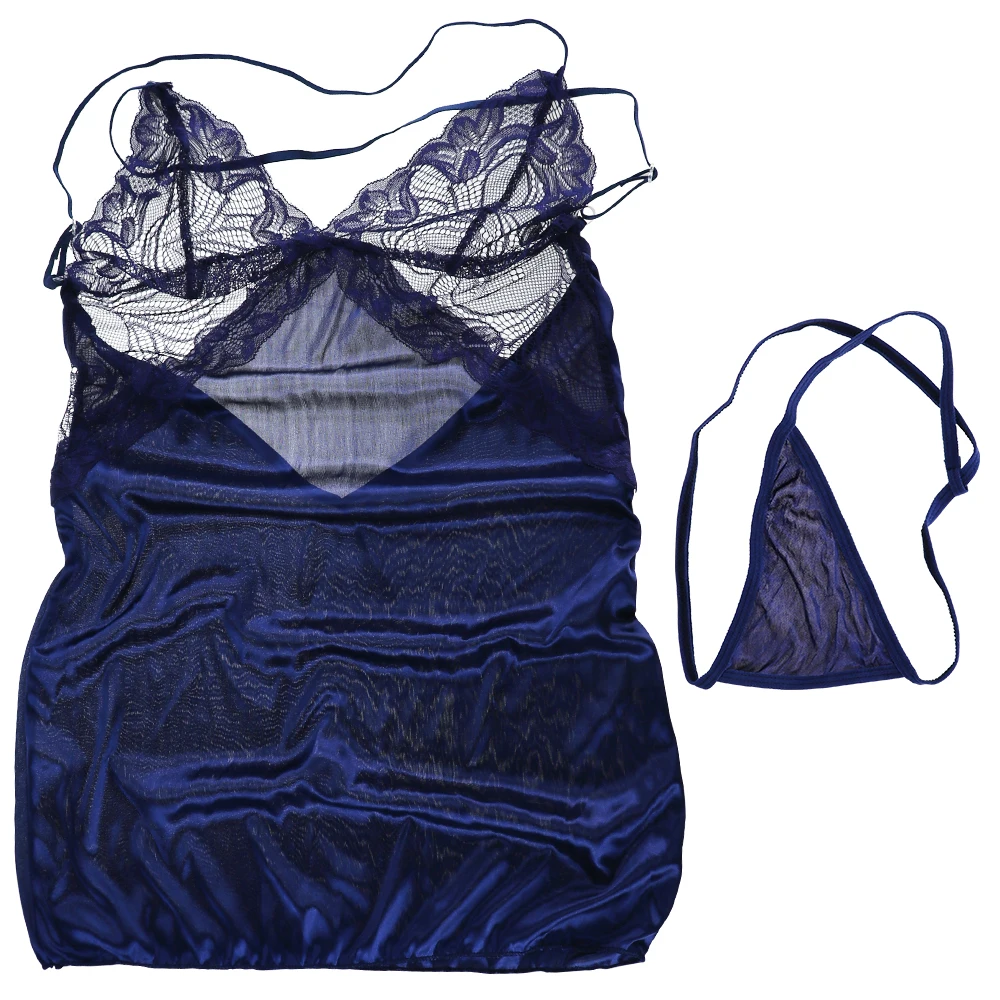 Сексуальное атласное женское белье, кружевная шелковая ночная рубаш...