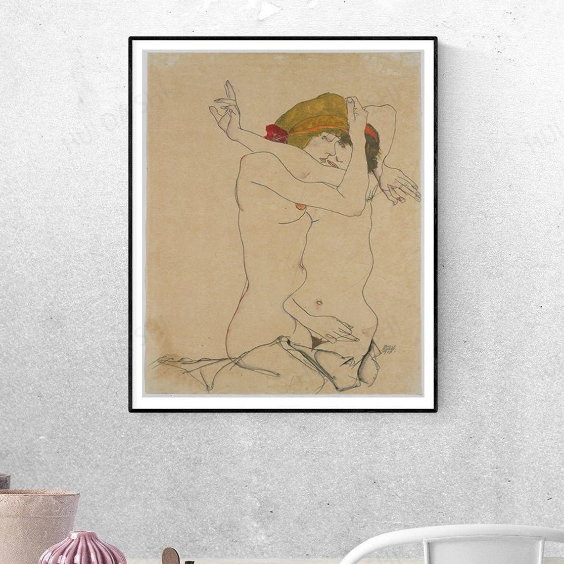 Две женщины, обнимающие Эротическое искусство Эгон Schiele 1913, экспресс, современное искусство, Schiele, идея подарка-настенный художественный плакат печать